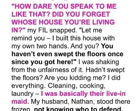 After a year of cooking, cleaning, and keeping peace in my in-laws’ home, my father-in-law lost his temper over a spilled mop bucket and reminded me it wasn’t my house. Nathan promised we’d move “soon,” but nothing changed. His parents constantly judged me, and Nathan stayed silent. That day, I finally stood up for myself and gave him an ultimatum—find us a place within a week or I’d leave alone. He found his uncle’s cottage, and we moved out immediately. Years later, we built our own peaceful home. His father still doesn’t speak to me, but I no longer need his approval.