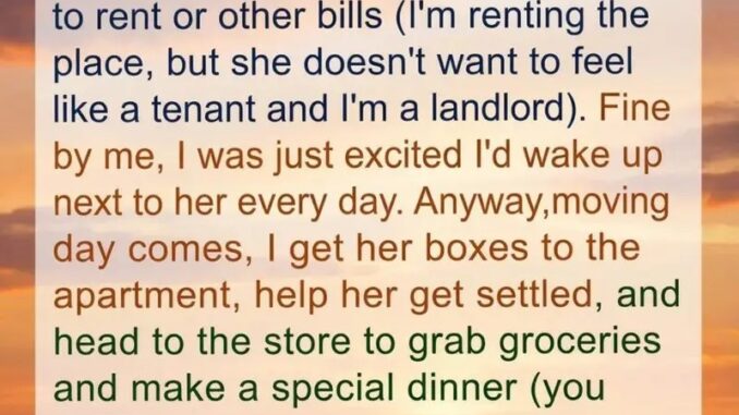 Moving day comes, I get her boxes into the apartment, help her settle in, and head to the store to grab groceries so I can prepare a special dinner—candles, music, the whole thing. But when I walk back through the door, the wine literally slips out of my hands, and I ask her to move out immediately because every single one of her boxes is completely empty. Instead of unpacking her belongings, she had used the time to rearrange the entire apartment, replacing my furniture, my decorations, and even the layout I had lived with for years.