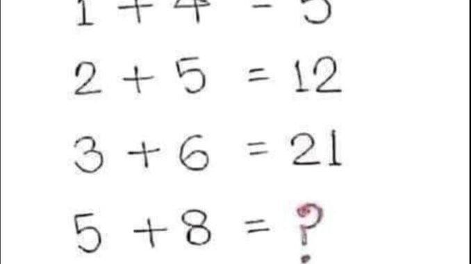 If 1+4=5, 2+5=12, and , then what is the value of 5+8?