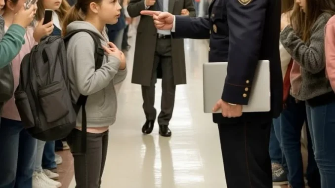 At Lincoln High School, a routine security check turned into a public humiliation when a guard accused a shy student named Maya of stealing an expensive laptop. Seeing her worn clothes, he assumed she couldn’t possibly own such a device and ignored her explanation that she had won it in a STEM competition. He called her a thief in front of a growing crowd of students who recorded the scene. Maya sat in tears until her father arrived—Dr. James Reeves, the district superintendent. After calmly hearing what happened, he exposed the guard’s prejudice by showing the engraved proof that Maya had legitimately earned the laptop. The guard was suspended and later fired. The incident sparked important discussions about bias and assumptions, and Maya returned to school with new confidence, using her laptop to teach others coding. The event became a powerful lesson that appearances don’t define worth and that authority must be used with fairness and respect.