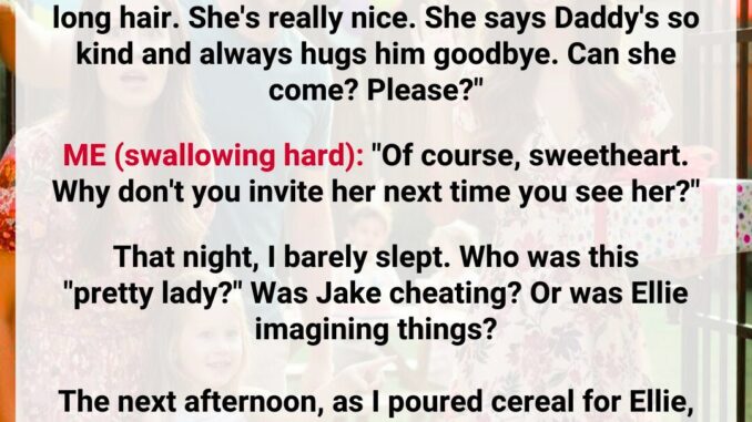 The next afternoon, I tried again—casual, calm, controlled. “Did you invite the pretty lady?” I asked while pouring cereal. “Yep!” Ellie said cheerfully.