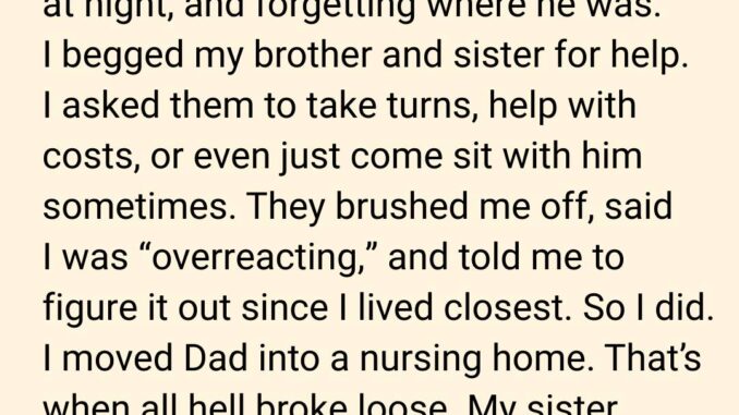 My sister screamed that I was a monster. My brother said I’d “abandoned” our father like unwanted baggage. They talked about loyalty and family as if I hadn’t been the one cleaning up burned pans and answering midnight phone calls.