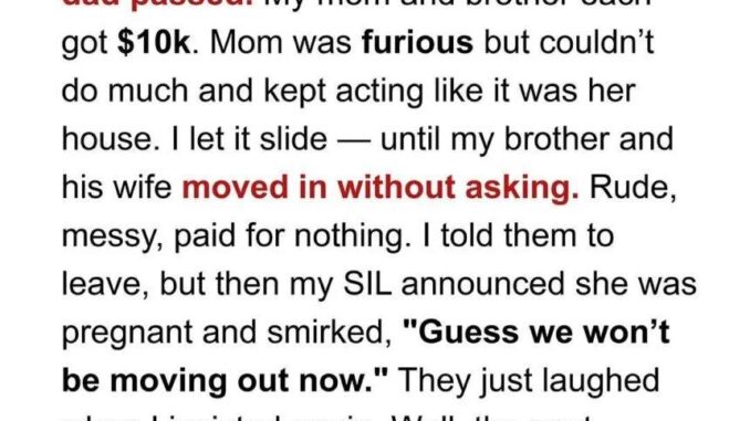 After my father died, I tried to protect the home he left me — until my mother, brother, and pregnant sister-in-law moved in uninvited. Months of disrespect followed. I became a servant in my own house, and when they demanded I leave for “disturbing their peace,” I finally acted. With my uncle’s help, I sold the house and gave them 48 hours to move out. I chose peace over guilt and learned that love never means accepting mistreatment.