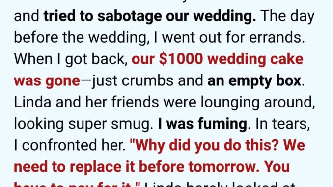 Linda strutted over to me, pretending to look confused. “Oh dear,” she said loudly, “did the bakery forget your cake? How unfortunate.”