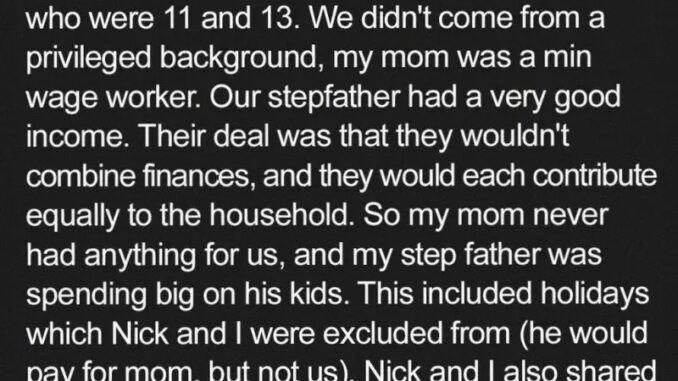 Growing up, my stepdad, Liam, made it clear my brother Nick and I were outsiders. While he spoiled his daughters with vacations and their own rooms, we were left behind, sharing a cramped bunk-bed space and watching from the sidelines. Years later, I thought that chapter of my life was over—until Liam pulled me aside and demanded I give his daughter $25,000 for a house.