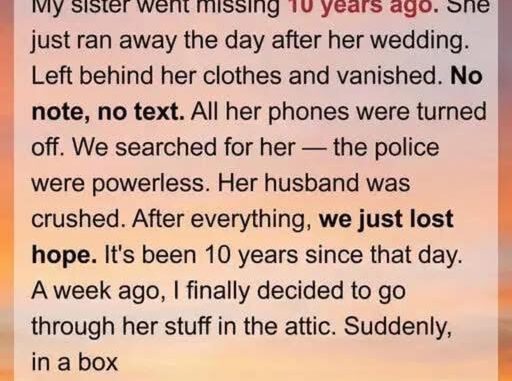 Then, a decade later, something shifted. I was rummaging through the attic, the air thick with dust and the memory of forgotten summers. A box, worn at the edges and labeled in my sister’s childish scrawl, promised nothing but remnants of college years—pictures, old notebooks, postcards from faraway places. I opened it, expecting nostalgia. Instead, I found her voice waiting for me, fragile and trembling on yellowed paper. Her letter contained no forwarding address, no new identity, no tidy explanation that could soothe the ache of ten lost years. What it gave us instead was far more delicate and real: the truth of a woman who had been quietly suffocating in a life that appeared perfect to the outside world but felt like a prison to her soul. She had not run from love, from family, from her husband. She had run from the slow erasure of herself, the relentless pressure to fold her identity into everyone else’s expectations, to disappear into their version of who she “should” be.