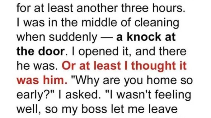 When Marissa opened the door, she expected to see her husband—same hoodie, same face—but something felt off. He didn’t greet her with a kiss. Didn’t use her nickname.