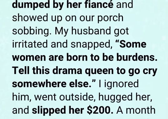 Before I could offer comfort, my husband’s voice sliced through the air like a knife. “Some women are just born to be burdens,” he sneered. “Tell this drama queen to take her act elsewhere. We aren’t a crisis center.”