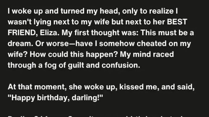 On my birthday, I woke up next to the wrong woman—my wife’s best friend, Eliza. Panic hit me instantly. She smiled, kissed my forehead, and called me “darling.”